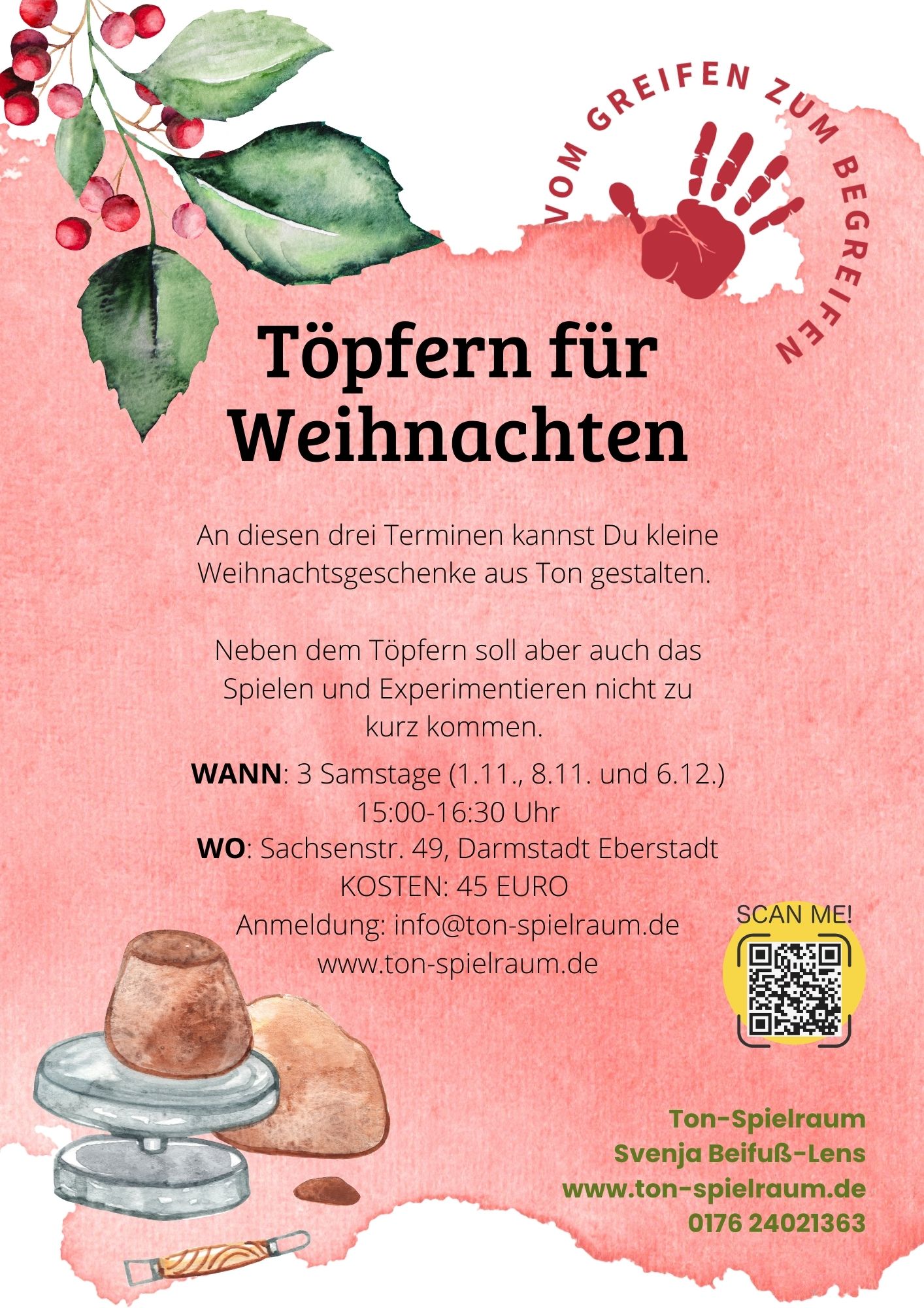 An diesen drei Terminen kannst Du kleine Weihnachtsgeschenke aus Ton gestalten.